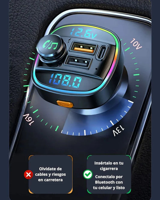Transmisor Convertidor Bluetooth FM MP3 con Carga Rápida Usb Tipo C - Envío Gratis