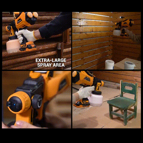 No tendrás que esperar largas horas para terminar tus proyectos de bricolaje gracias a las 3 baterías de litio que te enviaremos con esta Pistola de Pintura de gran potencia y de carga rápida brindándote hasta 4 horas de trabajo continuo